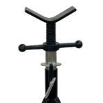 The G-PRO JACK is a rugged yet space-saving pipe stand built for professionals who need high load capacity in a compact footprint. With a 6,000 lb (2,725 kg) V-head rating and a 1¼” square tube base, it offers unmatched strength and portability for on-site or workshop use. The 7” V-head and locking pin system provides secure pipe positioning and easy transport or storage.